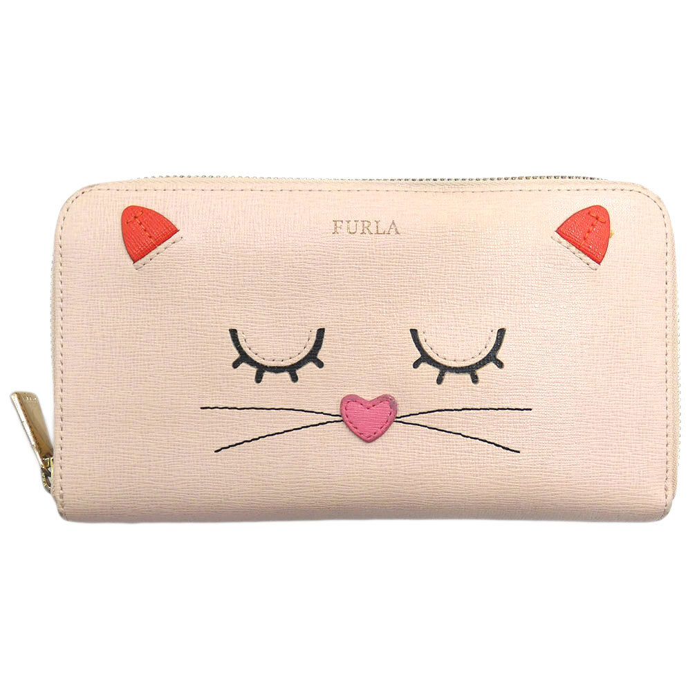 > フルラ 長財布 FURLA 財布 レザー ラウンドファスナー 動物 アニマル 猫 キャット CAT ピンク レディース OJ10273