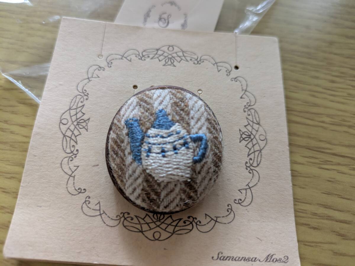 - サマンサモスモス ポット 刺繍 木枠ブローチ