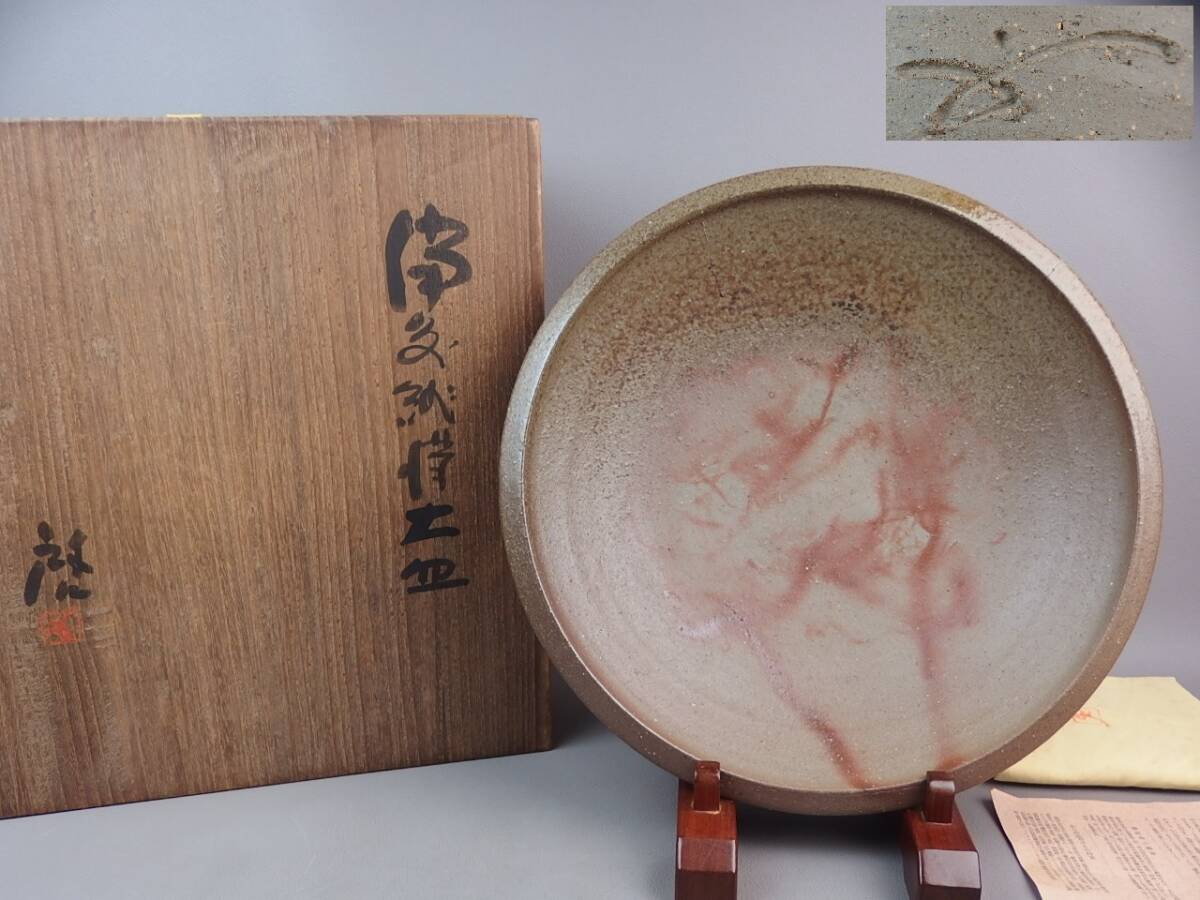 - 【骨董・茶道具】★備前焼 人間国宝 藤原啓★★備前緋襷大皿 直径約35.8cm gl084svl.7 和食器 花道 華道