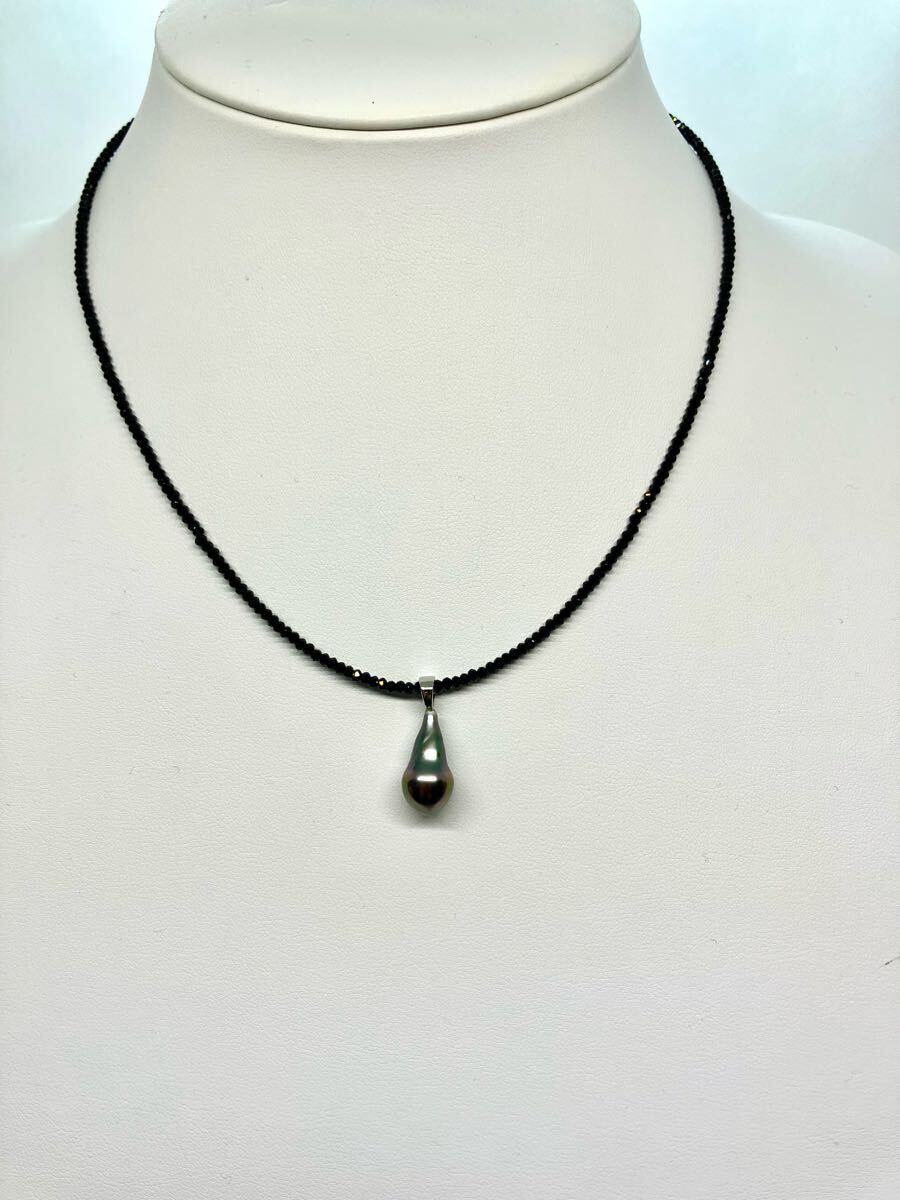 > 【新品】南洋真珠ネックレス*黒蝶ネックレス*バロック*シンプル*ブラックスピネル*天然パール*タヒチパール*サークル*虹色*No.2