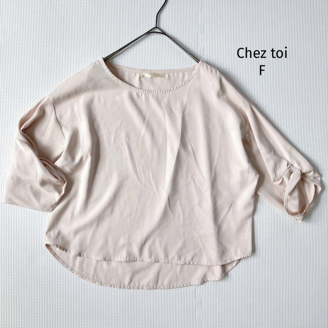 - シェトワ Chez toi ブラウス【F】五分袖 ピンクベージュ系 シフォン