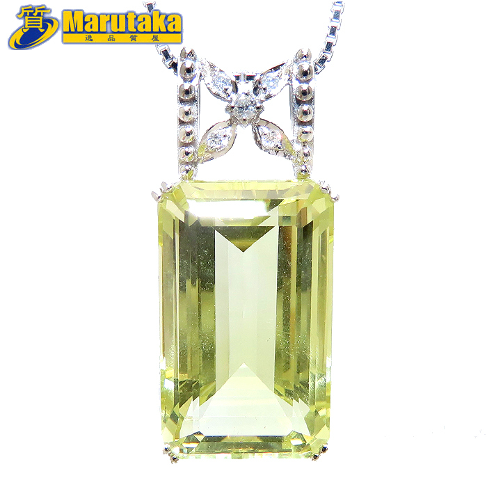 - イエロークォーツ ネックレス 42cm 鑑別書 K18WG Pt850 黄色 逸品質屋 丸高 尼崎市 Yellow Quartz Diamond
