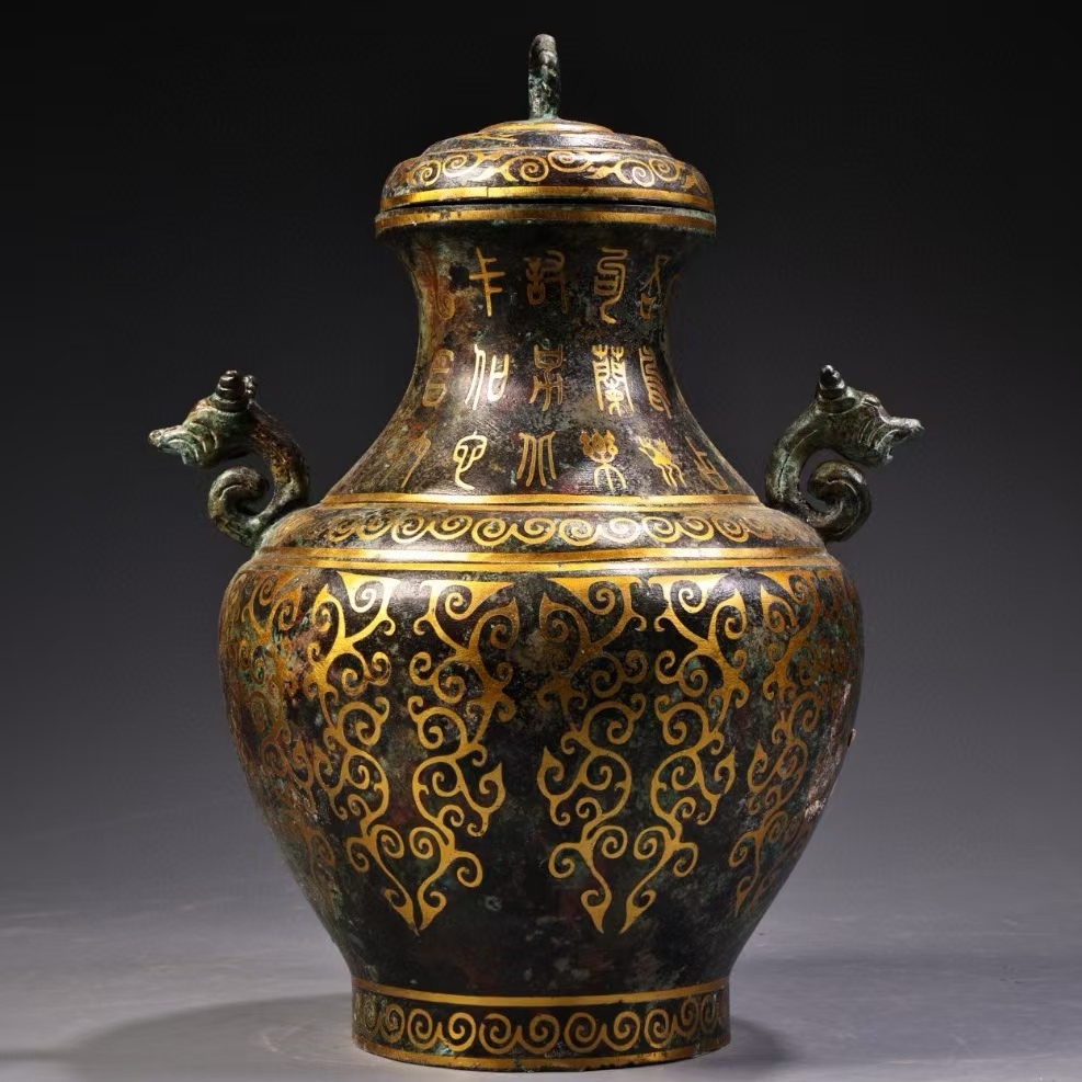 > 旧蔵 チベット古寺 商周時代 青銅器錯金竜耳円缶・酒器、尊、鼎 銅製 銅琉金 唐物 收蔵品 時代物 古美術古置物 希少珍品 供養品 文房具6.15