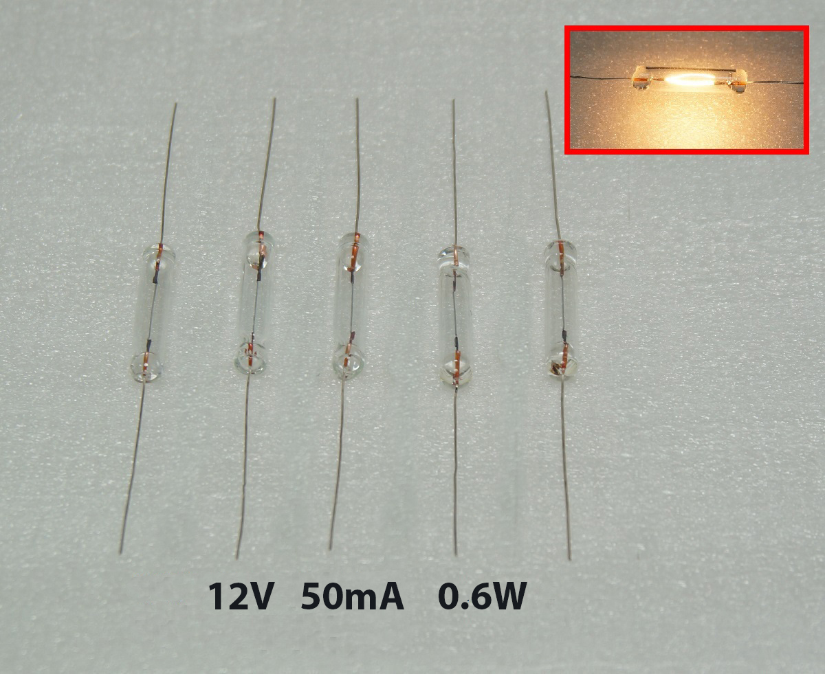 - 新品 電球 12V 50mA 0.6W 5個セット ガラス管ヒューズ型 電球 フィラメントランプ