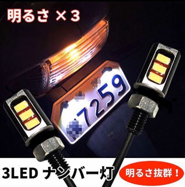 - 爆光バイク オートバイ 汎用 ナンバー灯 LEDボルト ホワイト 2個セット