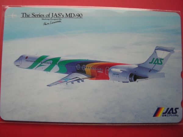 - 日本エアシステム JAS MD-90 デザイン黒澤明 未使用テレカ