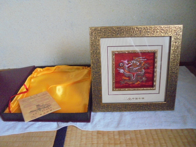 - 天宮 中国雲錦 額入り/龍の刺繍絵 置物/中国工芸品/美品