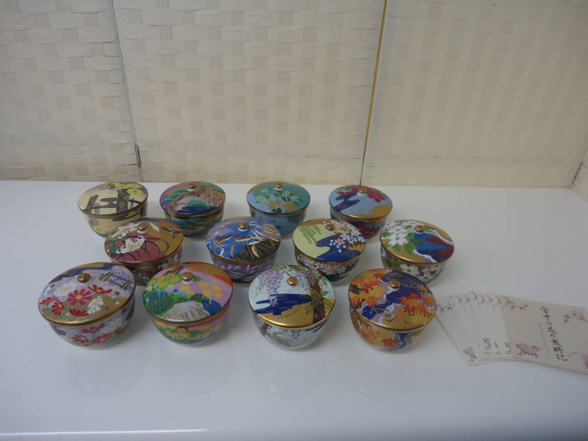 > ●○羽柴正和 『宮中の花の歳時記』 煎茶碗 蓋付茶碗 湯呑 金彩 湯呑 12客揃【訳あり】○●