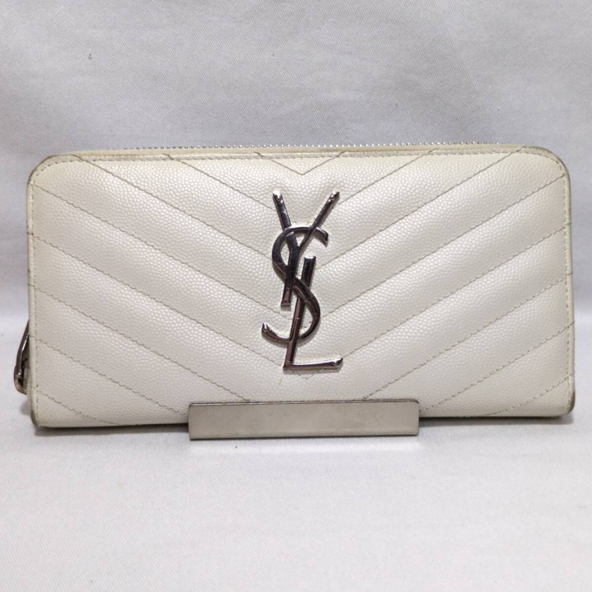 - SAINT LAURENT サンローラン ホワイト系 キャビアスキン レザー カサンドラ YSL ラウンドファスナー 長財布