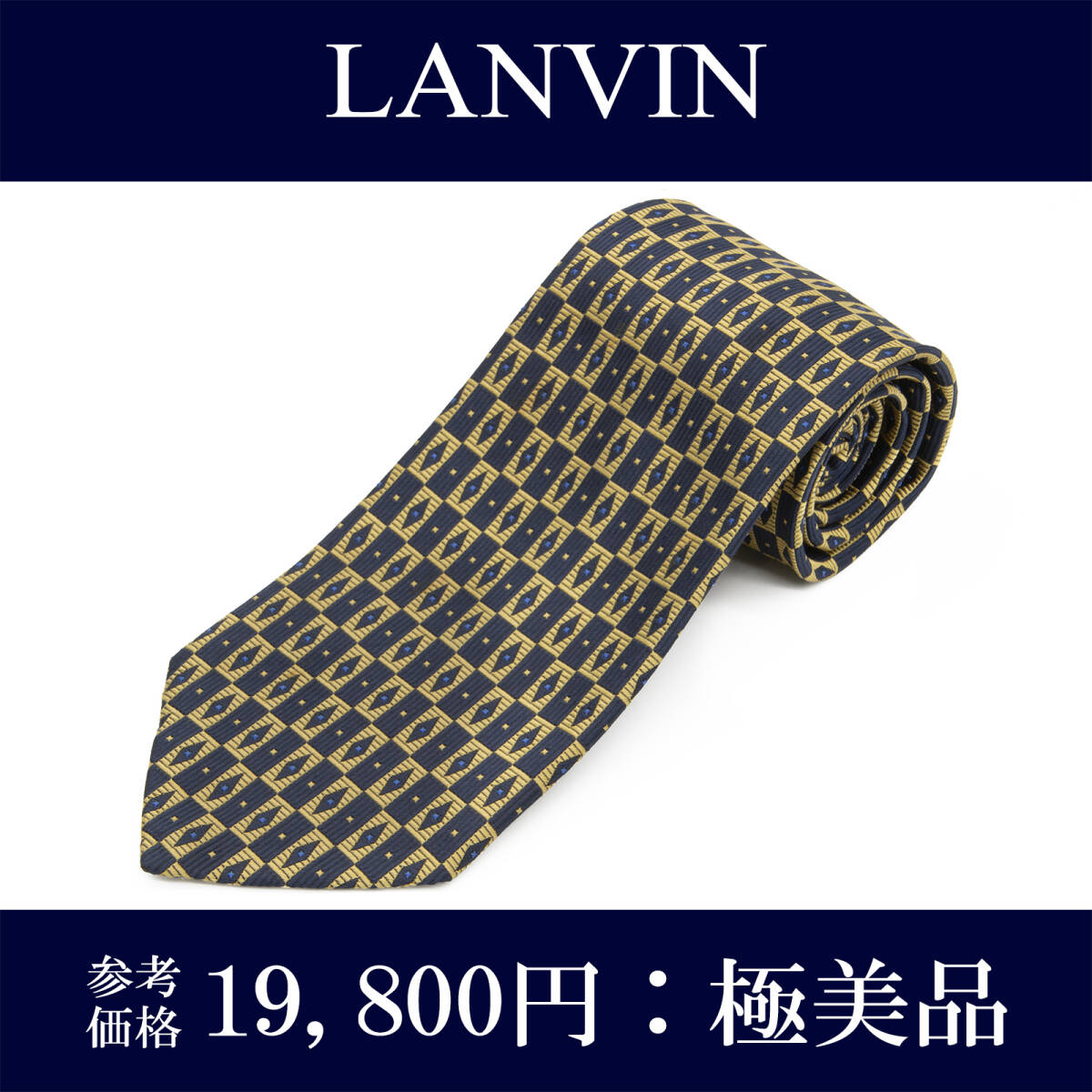 > 送料無料 ランバン ネクタイ ジャガード シルク ネイビーブルー ゴールド 四角 ドット ダイヤモンド マーク 光沢 ブランド フランス製 P037