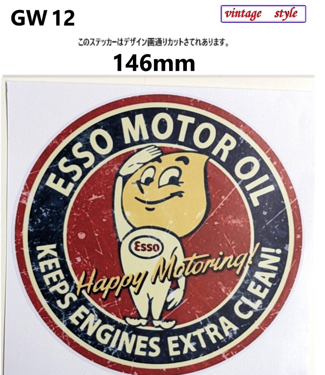 - GW400-1204ヴィンテージスタイル ESSO エッソ ガソリンステッカー モーターオイルステッカー ダメージ加工 レトロ ガレージ