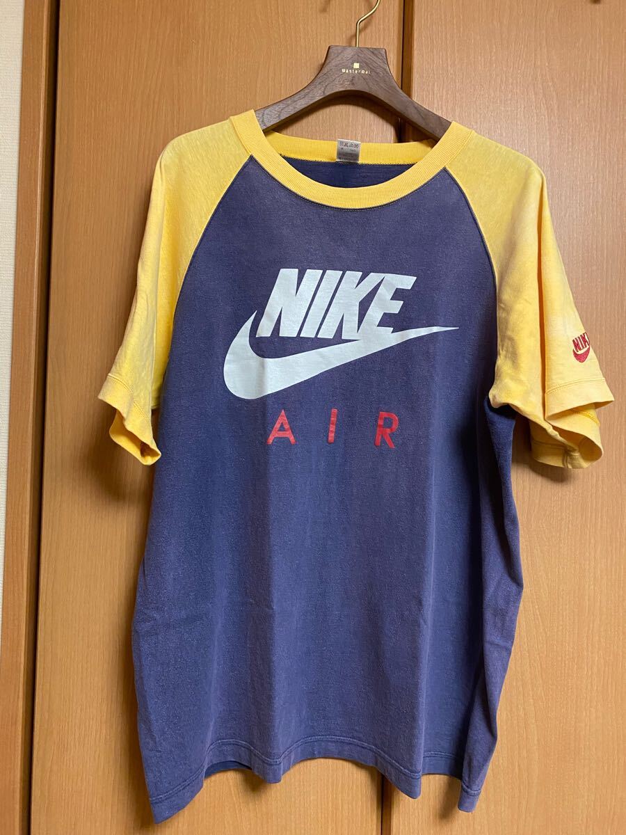 - 90S NIKE ラグラン Tシャツ 半袖 サイズL 銀タグ フェード 古着 ネイビー×イエロー