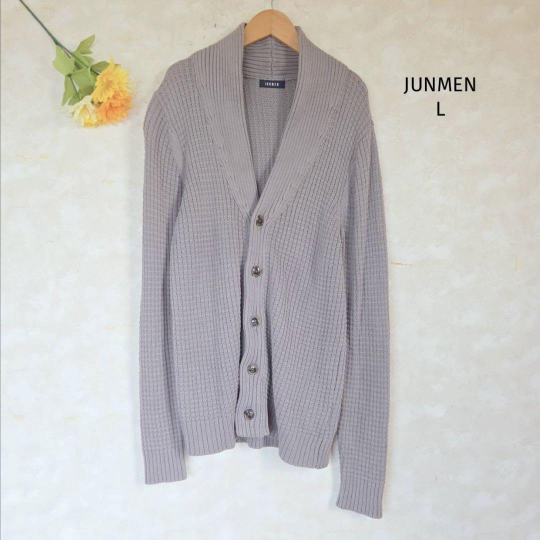 - JUNMEN フロントボタンショールカラーカーディガン 【L】長袖 グレー
