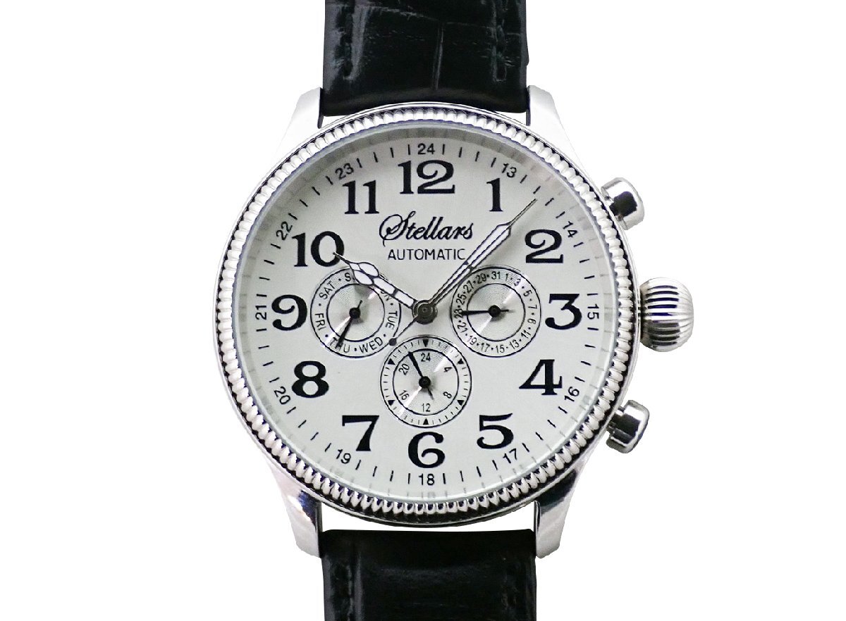 - STELLARS/ステラ/ステラズ 自動巻 デイデイト シースルーバック 裏スケルトン メンズ 中古