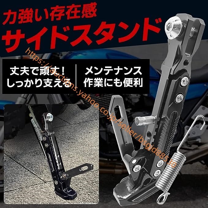 > バイク サイドスタンド キックスタンド アルミ合金 高さ調節可能 取り付け簡単 (ブラック) motorcyclesidebracketpeter252