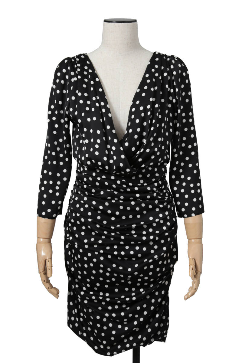- 25年新作 タグ付き 未使用 / 定価48.4万 ドルチェ&ガッバーナ ショートドレス ドレープ シャルムーズ マイクロドットプリント / size 42