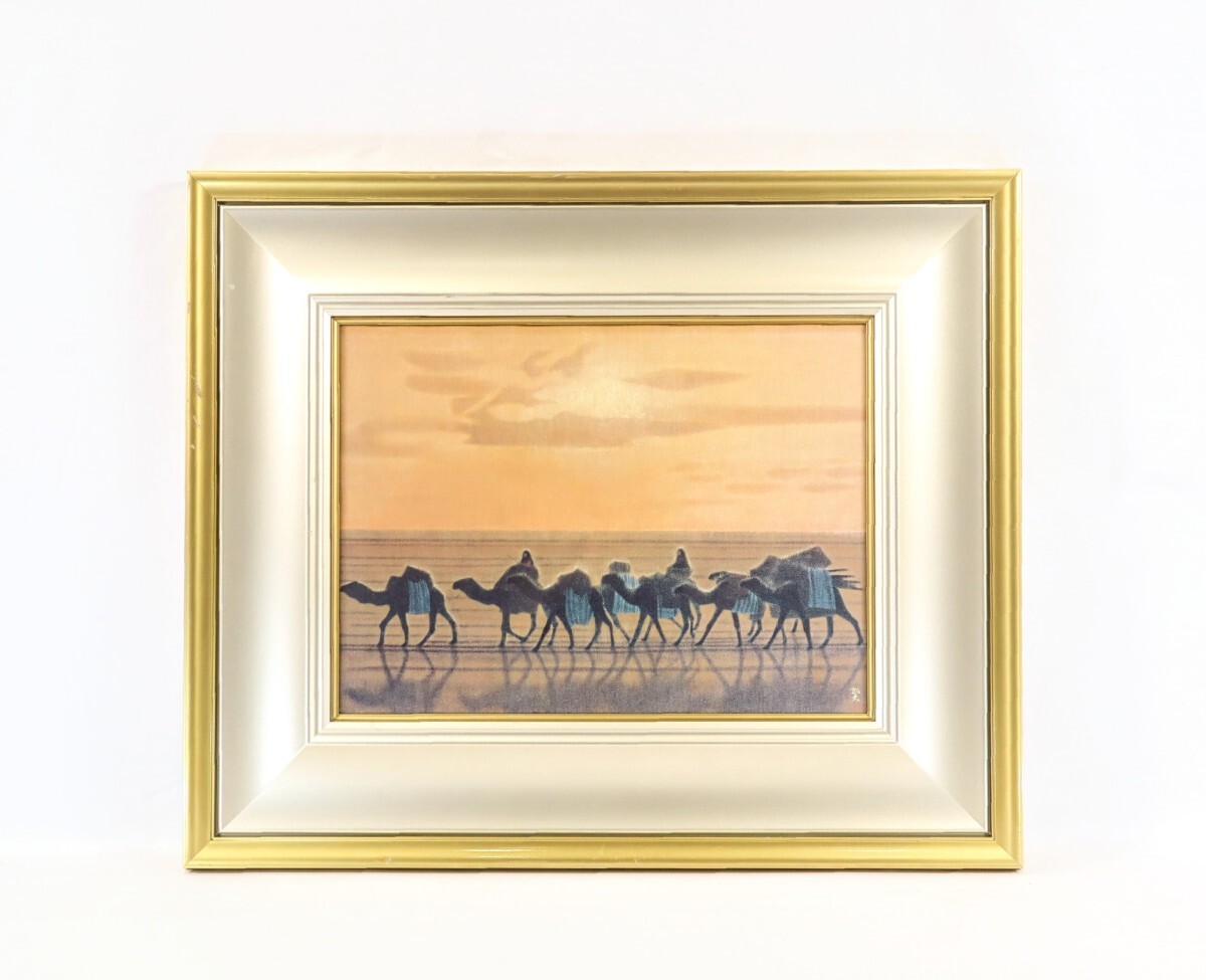 - 平山郁夫 大塚工芸岩絵具方式複製「流沙浄土変」画寸 38×28cm 広島県出身 厳しい道を進む一行の姿に作者の平和への願いを込めた傑作 10997