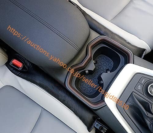 - トヨタ RAV4 センターコンソールシートレザー製 隙間クッション 2ピース 隙間防止 ブラック/カーボン柄 (カーボン柄) car-93