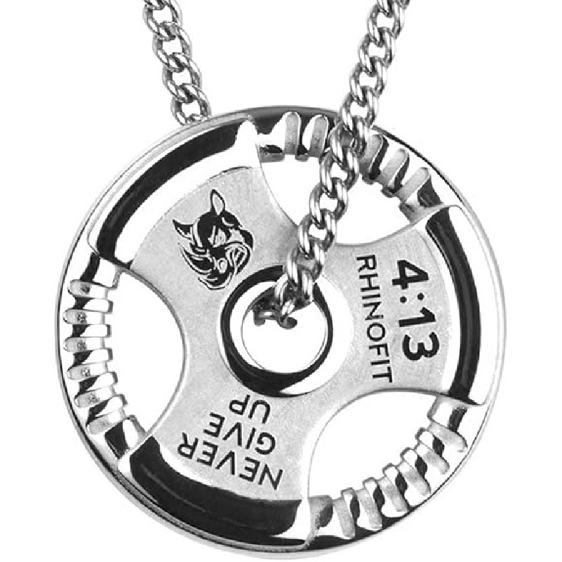 - ネックレス ジュエリー ダンベル・バーベル プレート デザインネックレス Never Give Up (Silver)