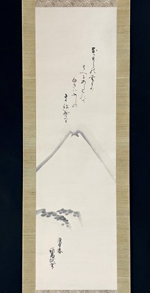 - HM1706[模写]狩野明信(祐斉) 「富士画賛」掛軸 紙本 書 山水/富士 富岳 日本画 日本美術 絵画 人が書いたもの 合箱