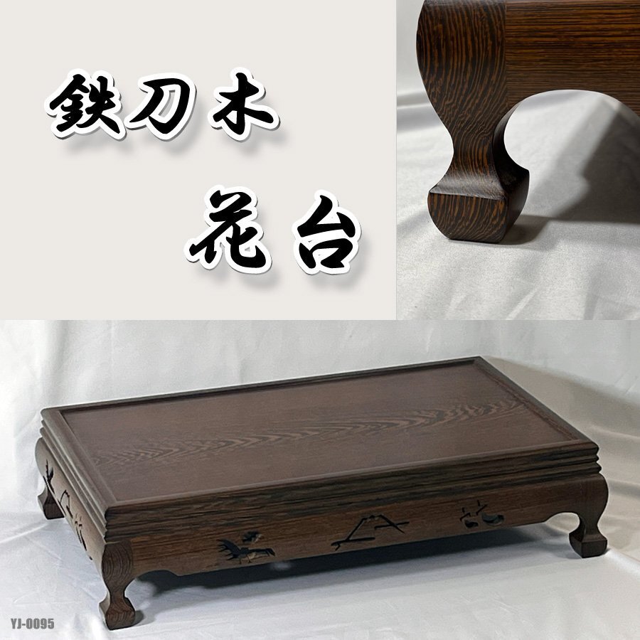 > 鉄刀木 花台 高級花台 飾り台 敷台 木目 インテリア 天然木 家具 香炉台 飾台 四足 透かし 長方型 床の間 置台 盆栽台 供物台◇YJ-0095
