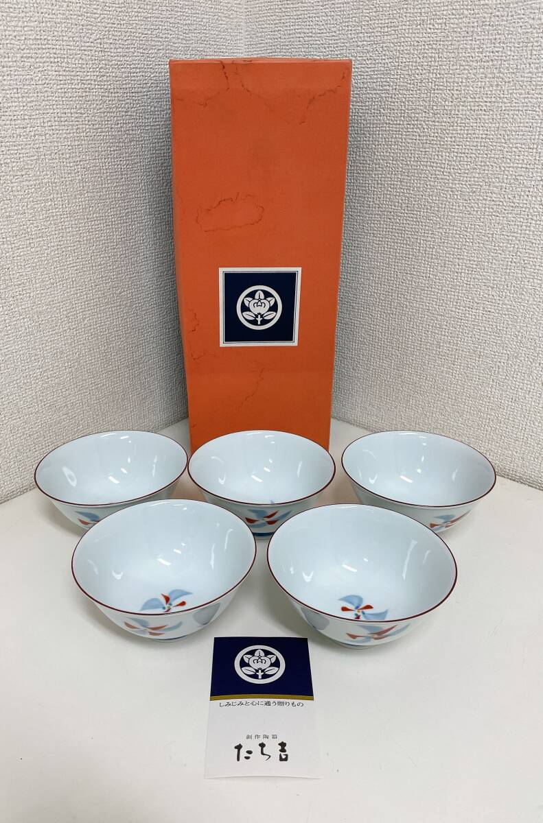 - 【たち吉 花小紋 飯碗 5客セット】外箱入/来客用/和食器/小ぶり/A76-044