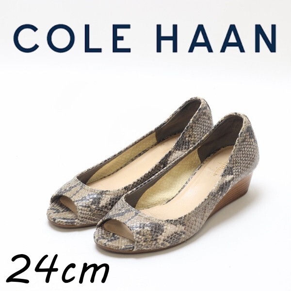 > ◆COLE HAAN コール ハーン パイソン型押しレザー オープントゥ ウェッジソール パンプス 7