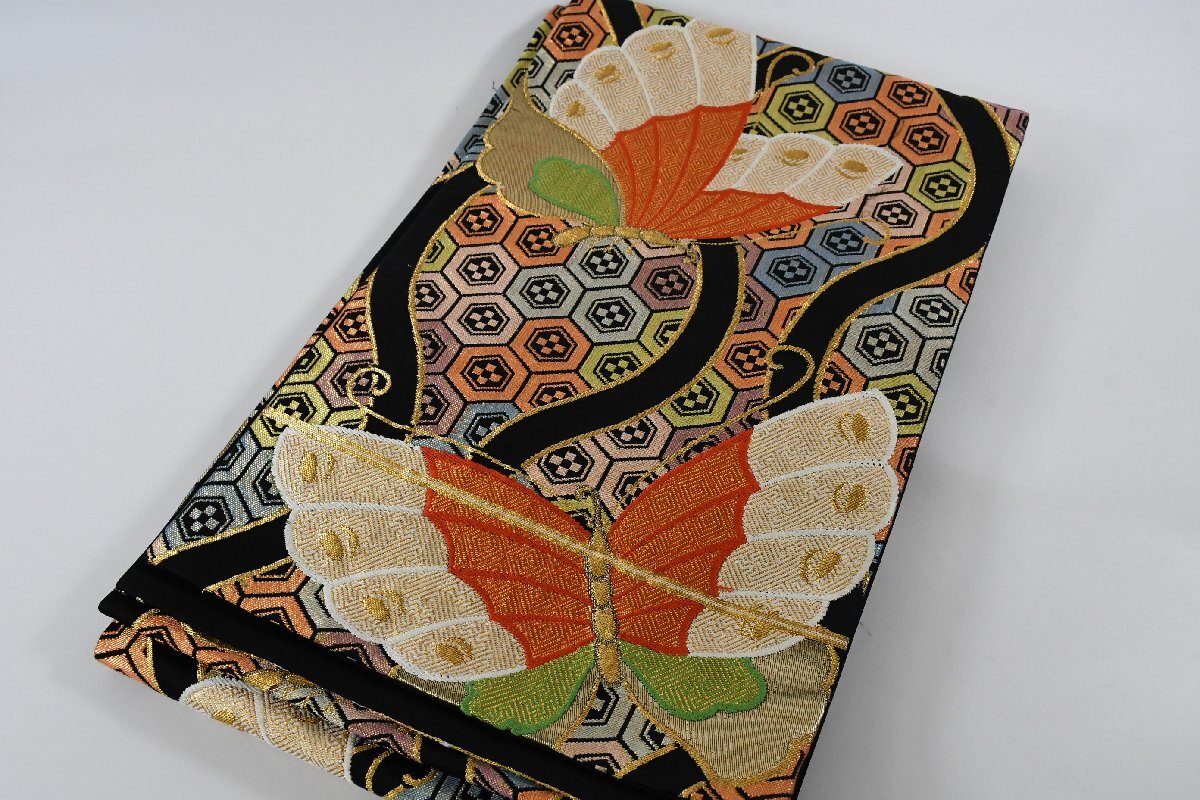 > 袋名古屋帯 六通柄 蝶々 よろけ縞 帯丈410cm ★着物屋 ne-15511 桜庭呉服店