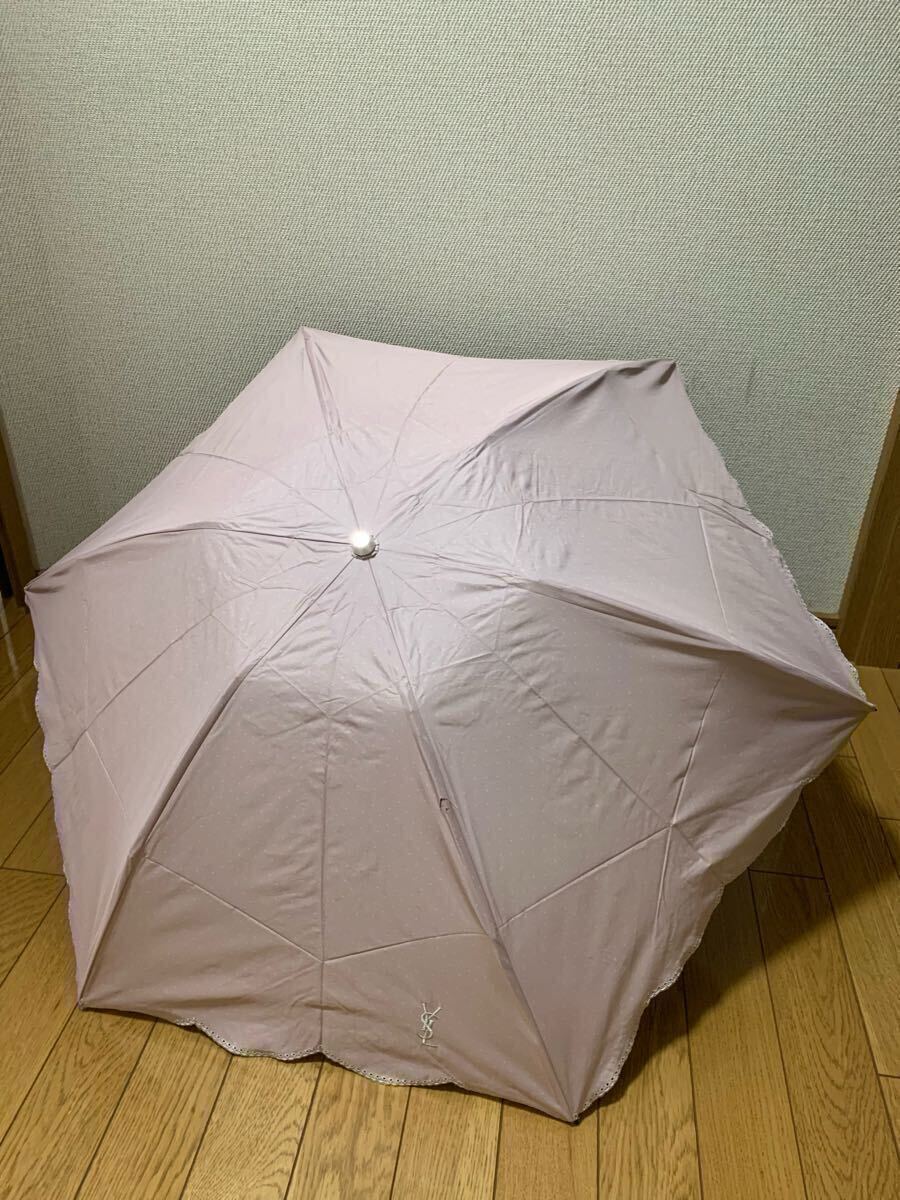 > イヴ・サンローラン 晴雨兼用 折りたたみ傘 UV ピンク 水玉 雨傘 日傘 中古 USED