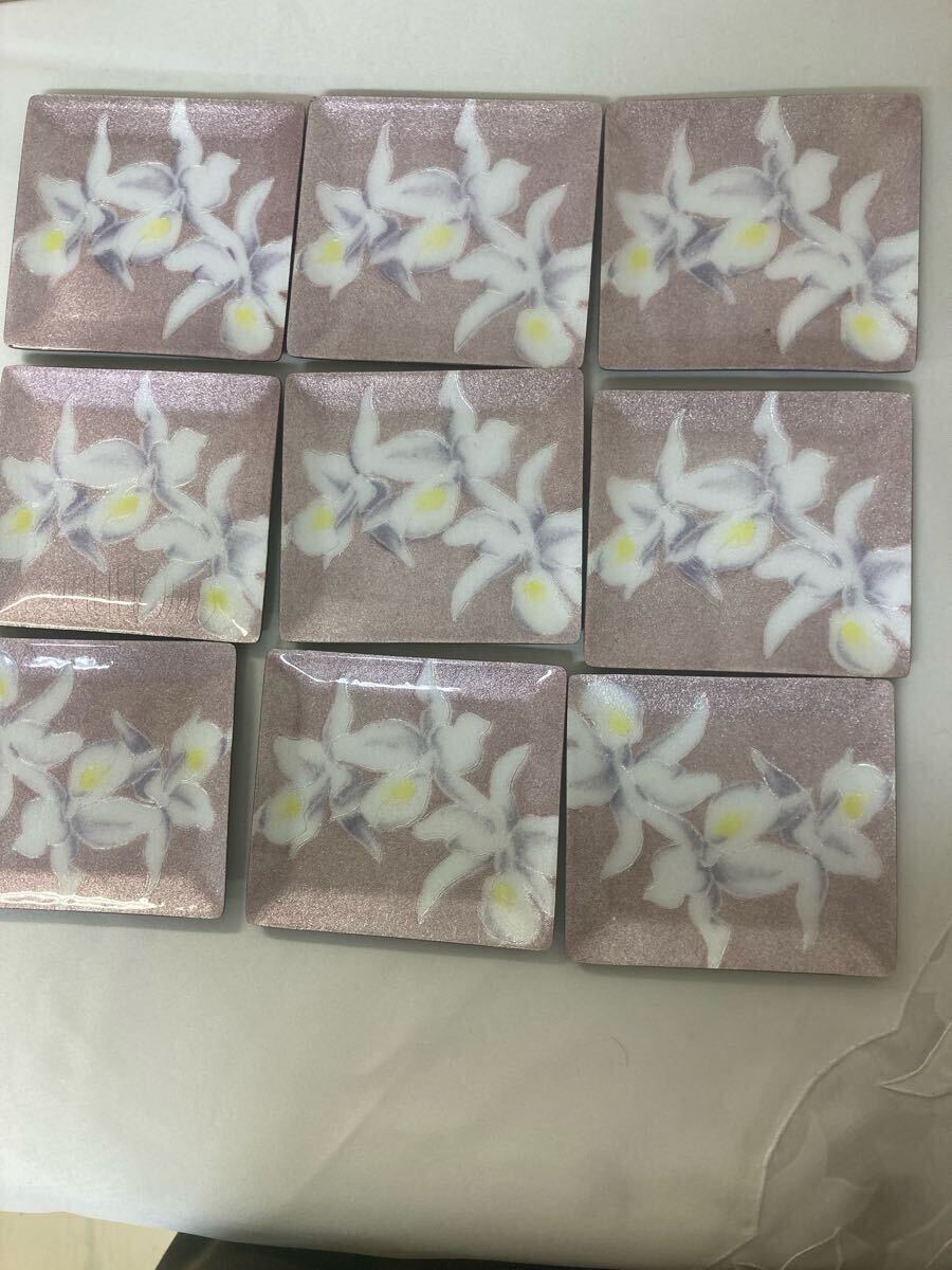 - 【七宝焼 銘々皿 9枚まとめ】角皿 花柄 小皿 和食器 食器【B5-3④】0618