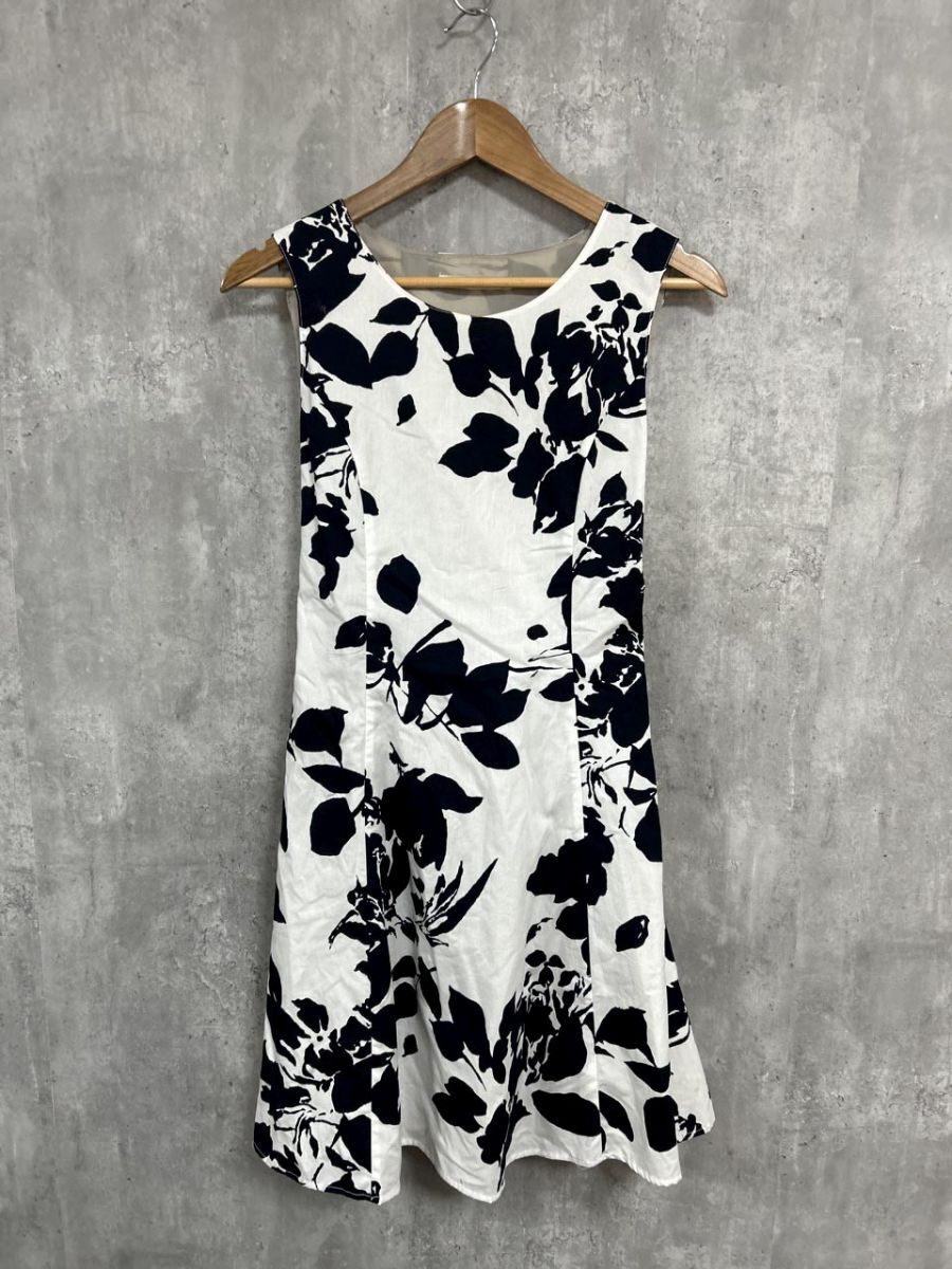 - Roomy’s ルーミィーズ 花柄 ノースリーブ Aライン ワンピース sizeF/白x黒 ■◆ レディース