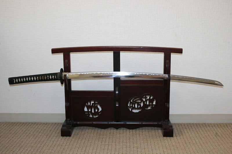 > 木柄本鮫皮居合模擬刀 約920g・ 縁頭目貫雲竜図三点一作・浜千鳥図金色絵鍔・真鍮切羽二枚 ・鞘なし・素振り、部品取りにどうぞ!