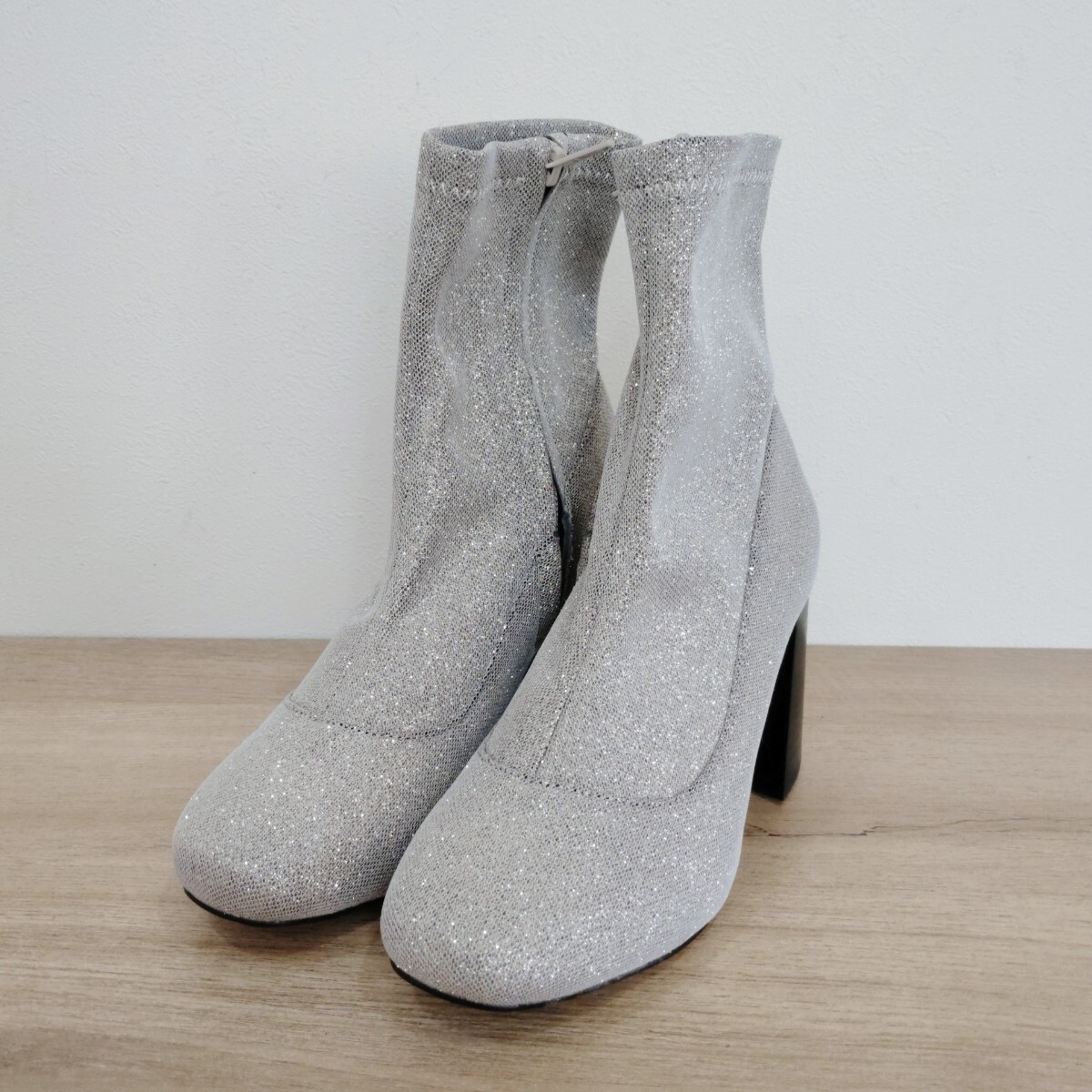 - snidel スナイデル ショートブーツ 22.0〜23.0cm ヒール サイドジップ シルバー ラメ レディース