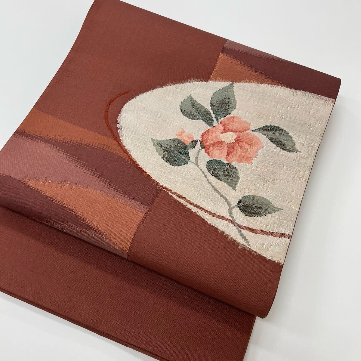 - 袋帯 一輪の花 上品な織出し 正絹 W-1077