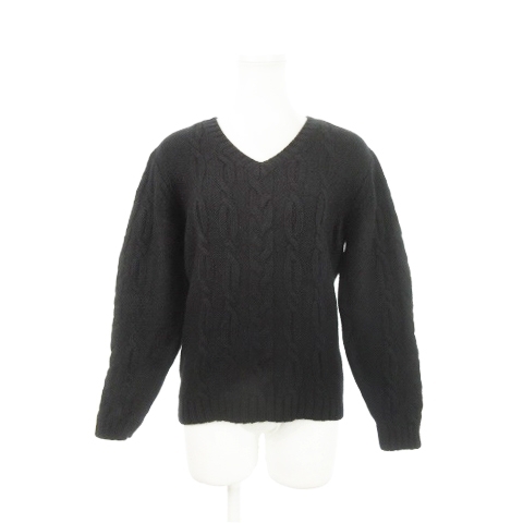 > ラウンジリザード LOUNGE LIZARD ニット セーター Vネック 長袖 ウール アラン柄 2 M 黒 ブラック /AH11 メンズ