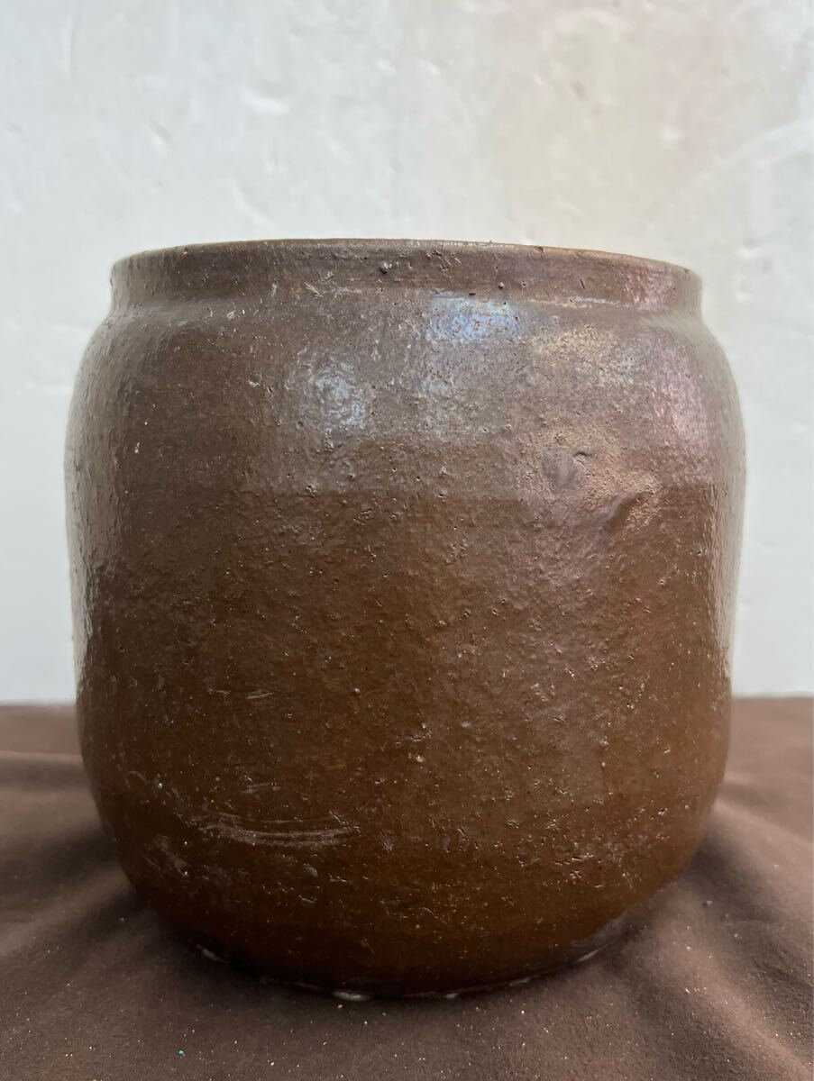 - 【ゆ80】⑤ 水瓶 瓶 かめ 壺 かめ 水鉢 陶器 甕 レトロ 昭和レトロ 日本庭園 インテリア 茶色 壷