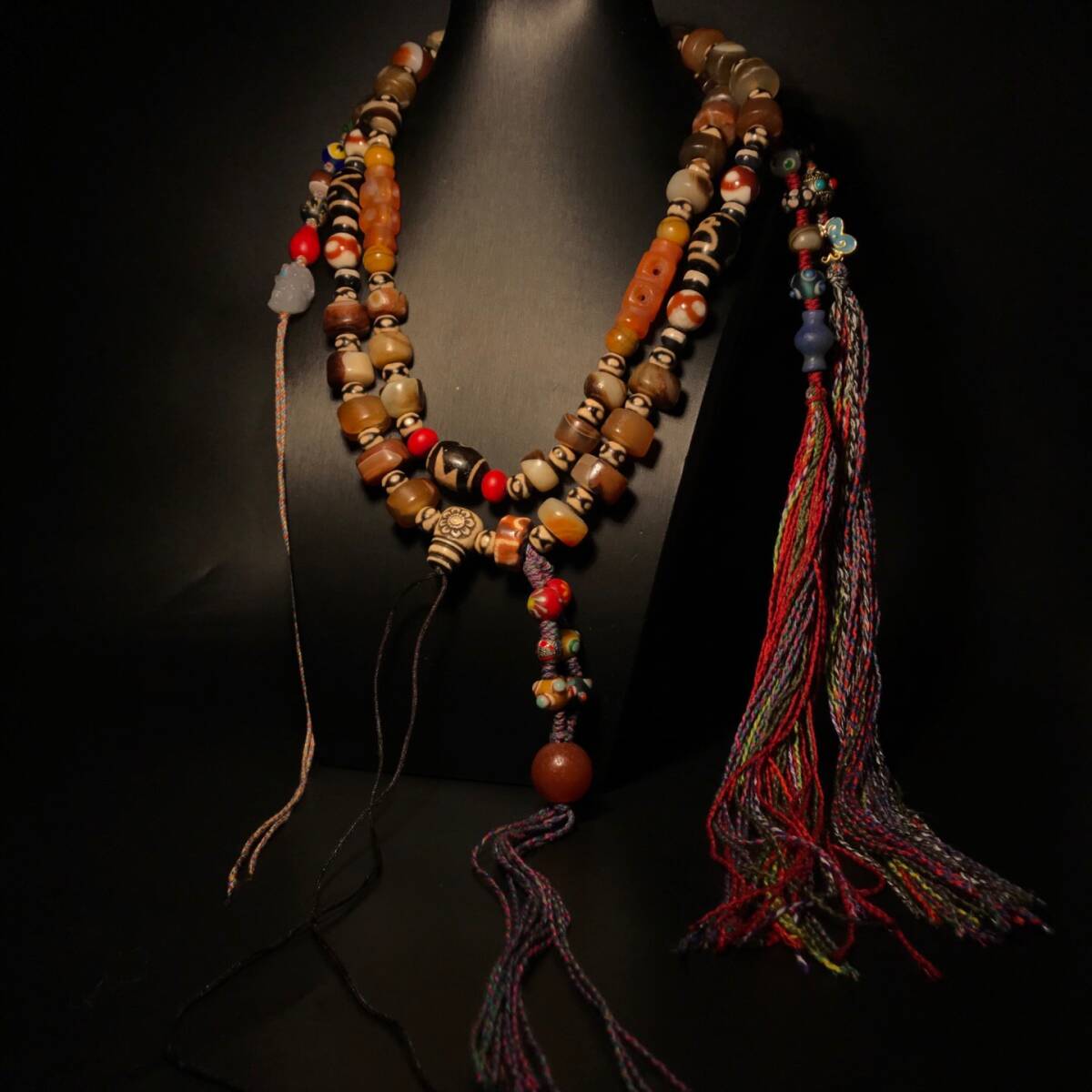 - 【超珍館蔵】瑪瑙製 細密彫 天珠仏珠念珠ネックレス 根付 裝身具 古賞物 古董品 古美術品 時代物 旧家蔵出 稀少珍蔵品