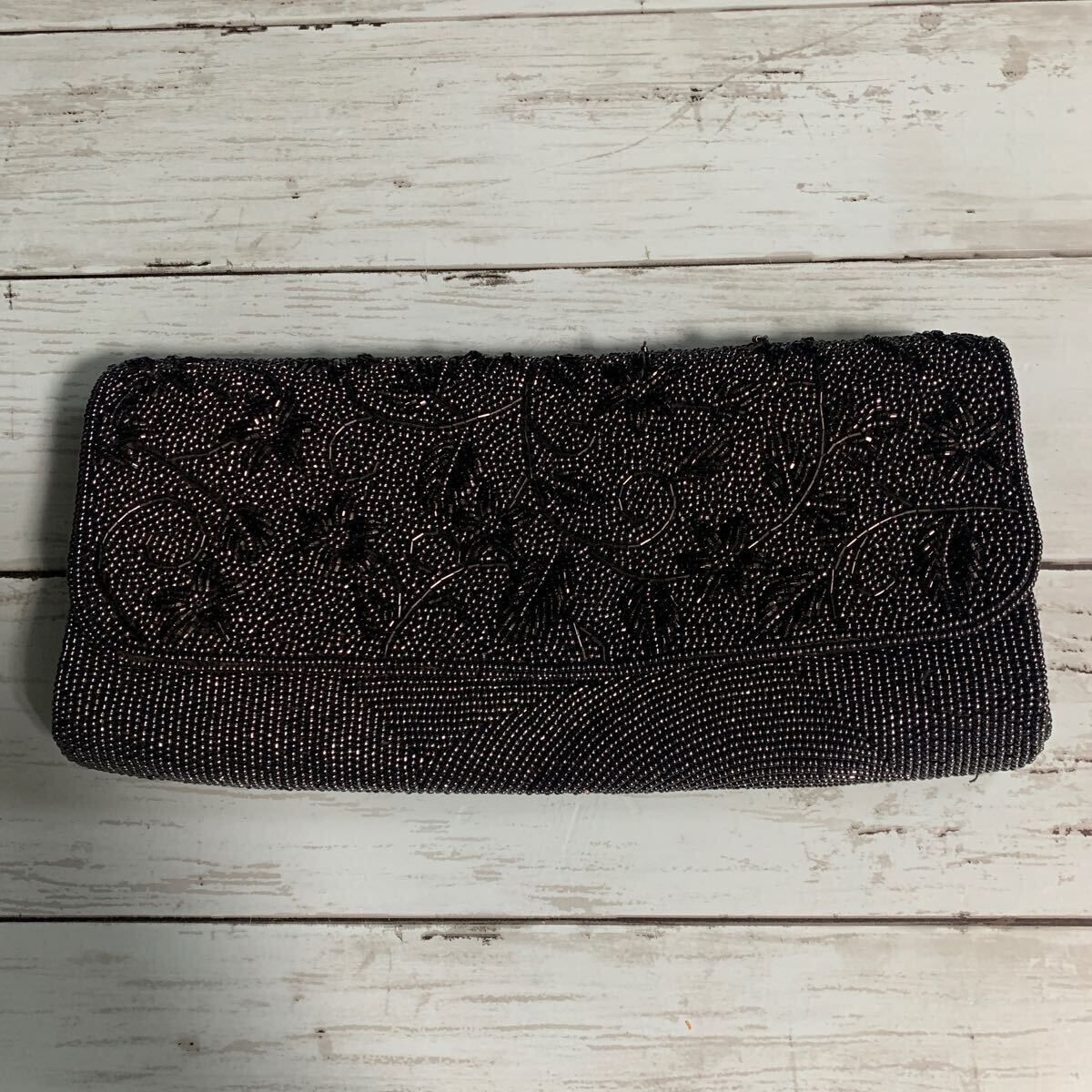 - ビーズバッグ パーティーバック クラッチバッグ フォーマル 花柄 墨色 ビーズ 和装小物 和装バッグ 和装 昭和レトロ ブラック (A-2401)