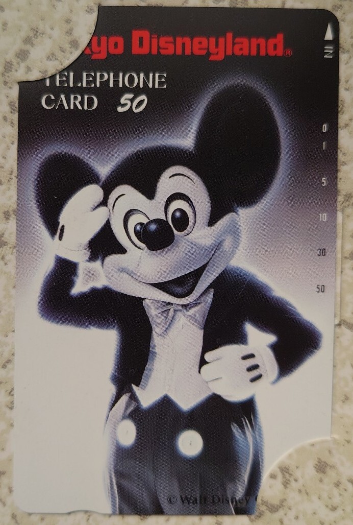 - 【未使用】テレホンカード 東京ディズニーランド ミッキーマウス 白黒 50度数 テレカ 台紙付き