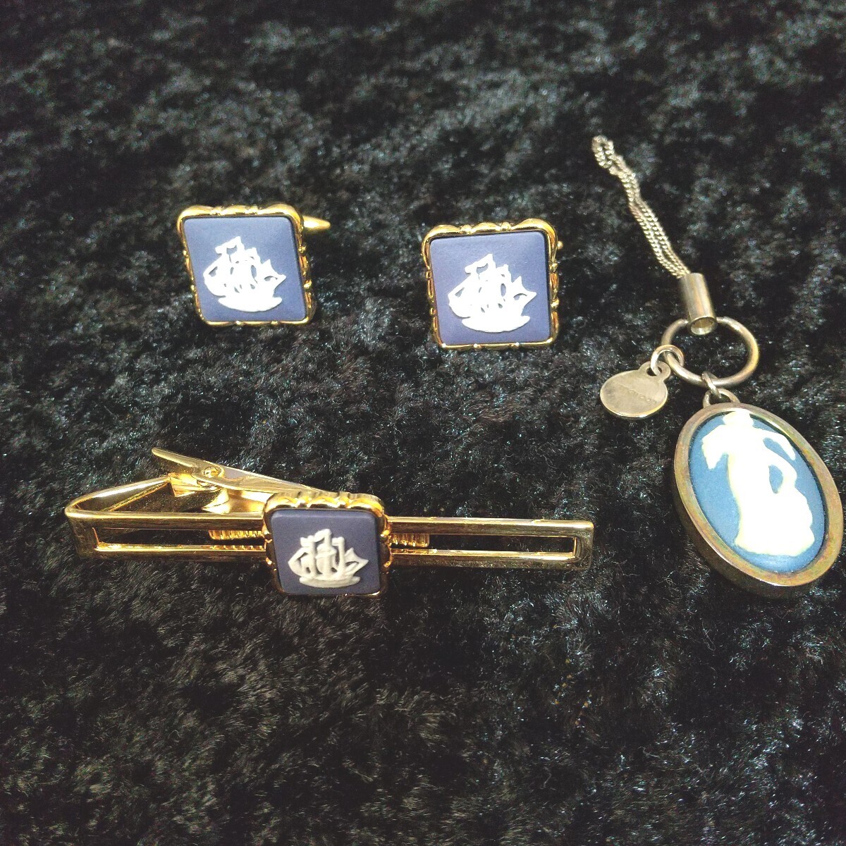 > 送料185円 WEDGWOOD ネクタイピン カフスボタン チャーム セット 中古現状品 ウェッジウッド タイピン カフス ストラップ