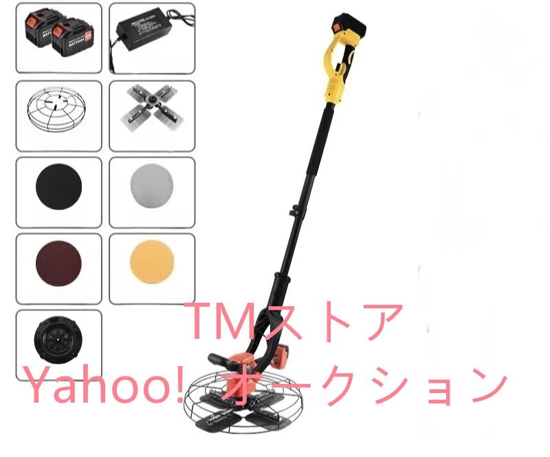 > 充電式トロウェル コンクリート研磨機 ポリッシャー 電動サンダー 45cm大直径 6速調整 延長ロッド 2個-10電池
