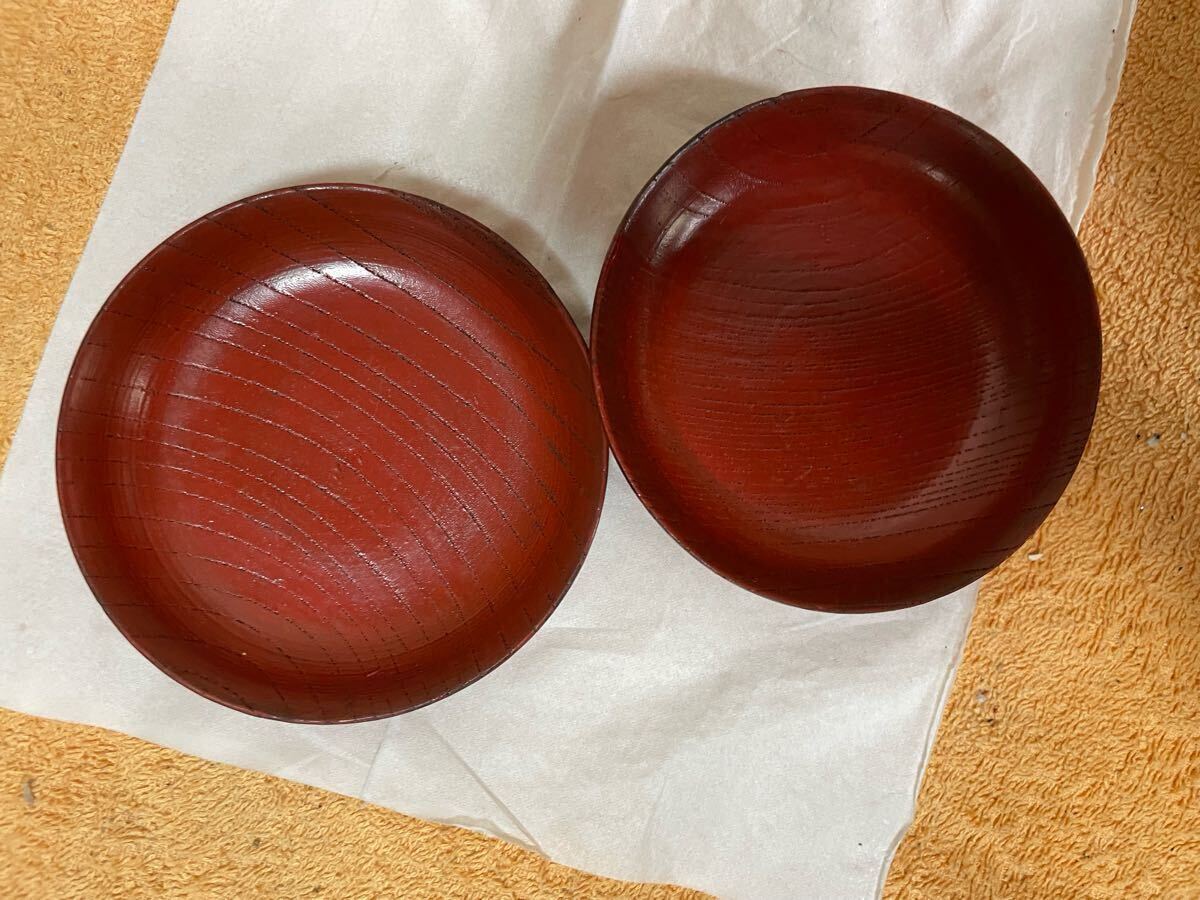 - アンティーク?骨董品? 木製 ?漆器? 木製漆器 ?漆塗?小皿?2枚セット?和食器?食器?汚れあり、341です。