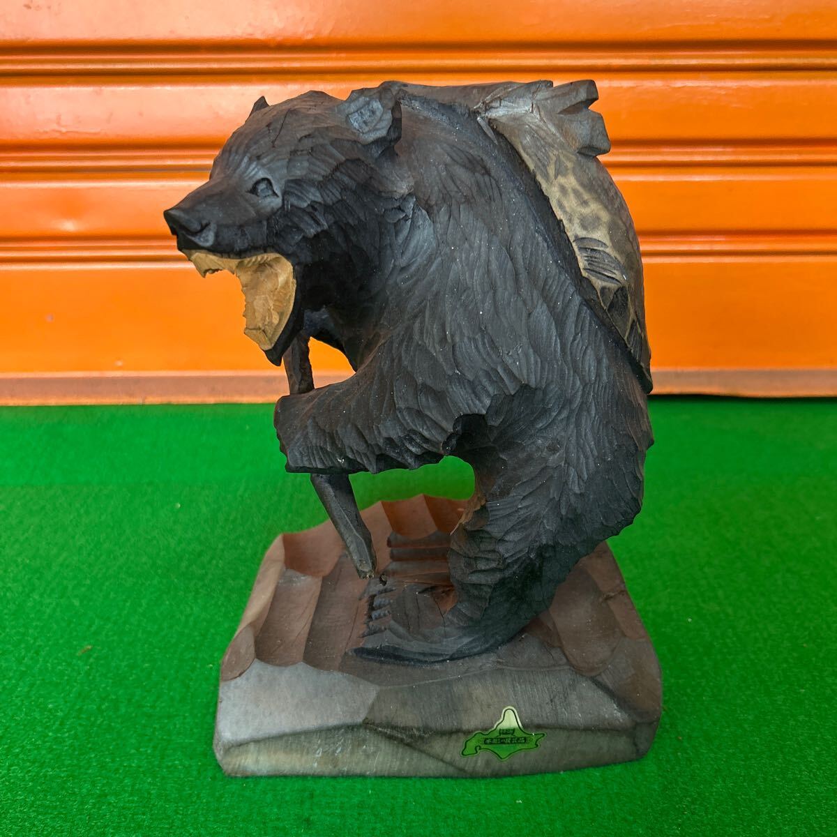 - 希少品 木製 特大 木彫り 怒り熊 置物 彫刻 置物 インテリア オブジェ 工芸品