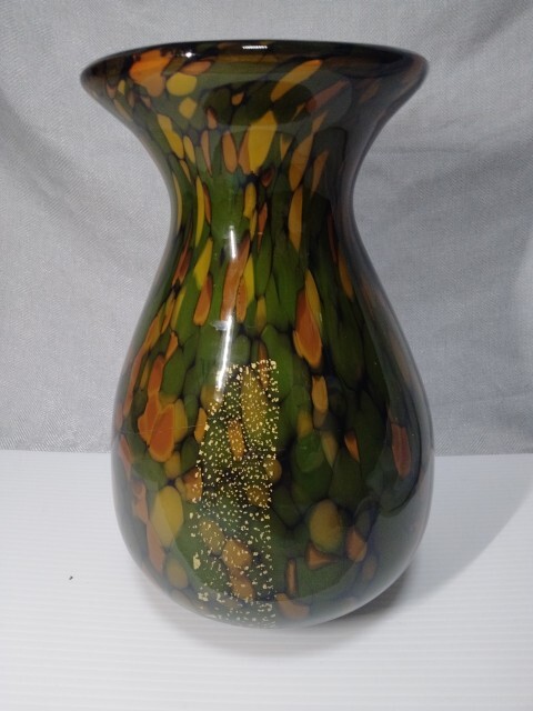 - ガラス花瓶 線キズあり 高28口15cm 内黒 外暗めの斑