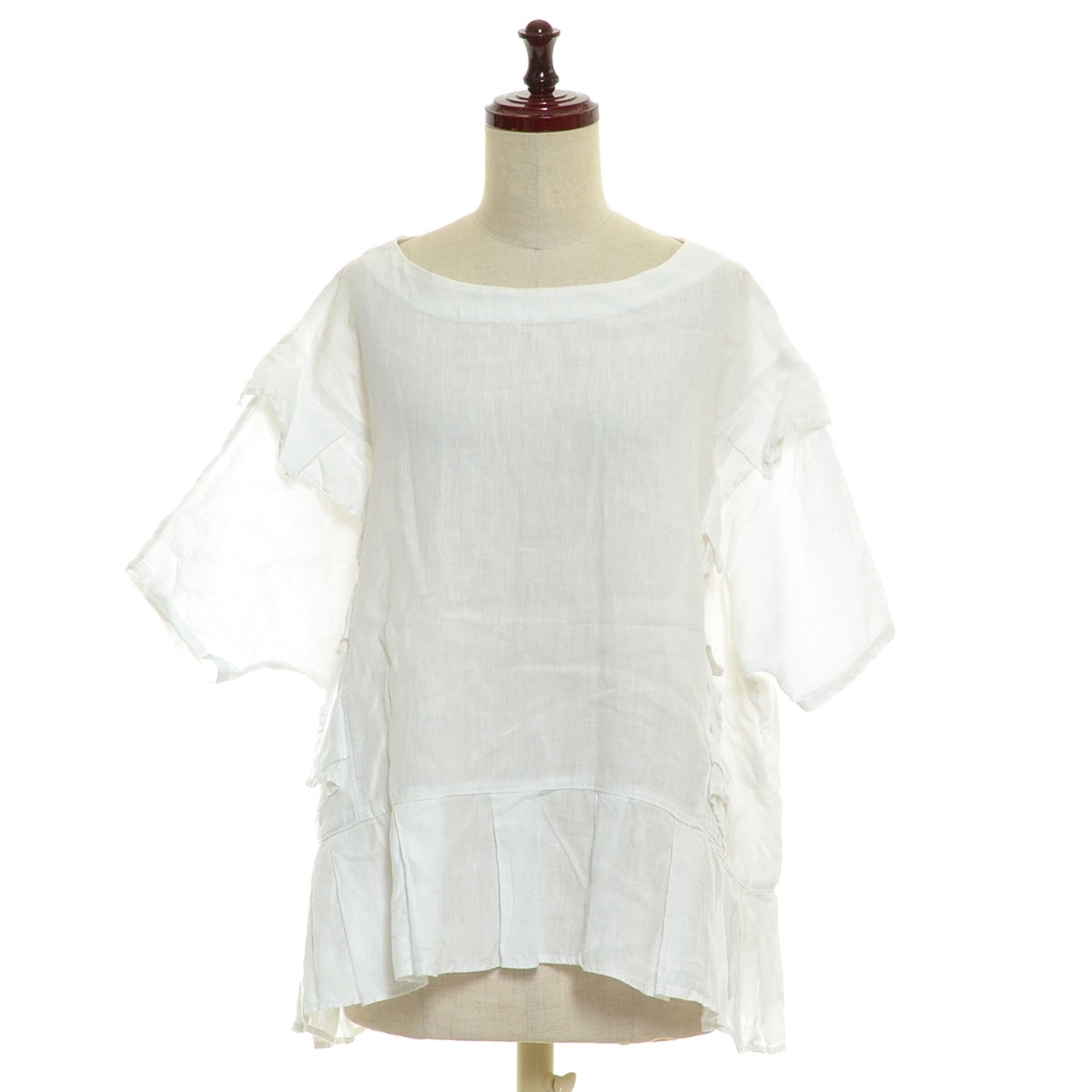 - ■520675 tumugu ツムグ ●半袖ブラウス フリルティアードプルオーバー サイズF 麻 レディース ホワイト