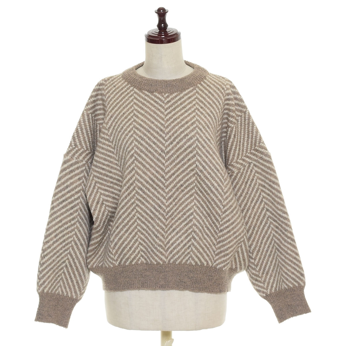 - □498280 lawgy ラウジー ●セーター プルオーバー ヘリンボーンニット サイズF レディース ベージュ