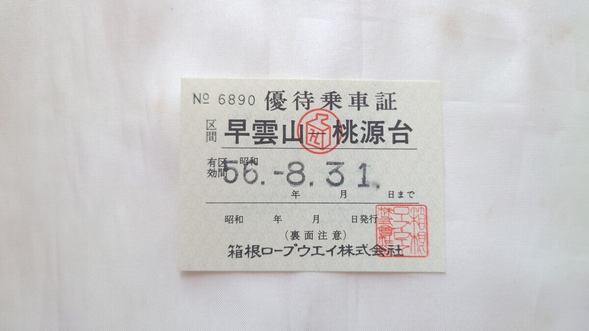- ☆箱根ロープウェイ☆早雲山ー桃源台 優待乗車証☆昭和56年