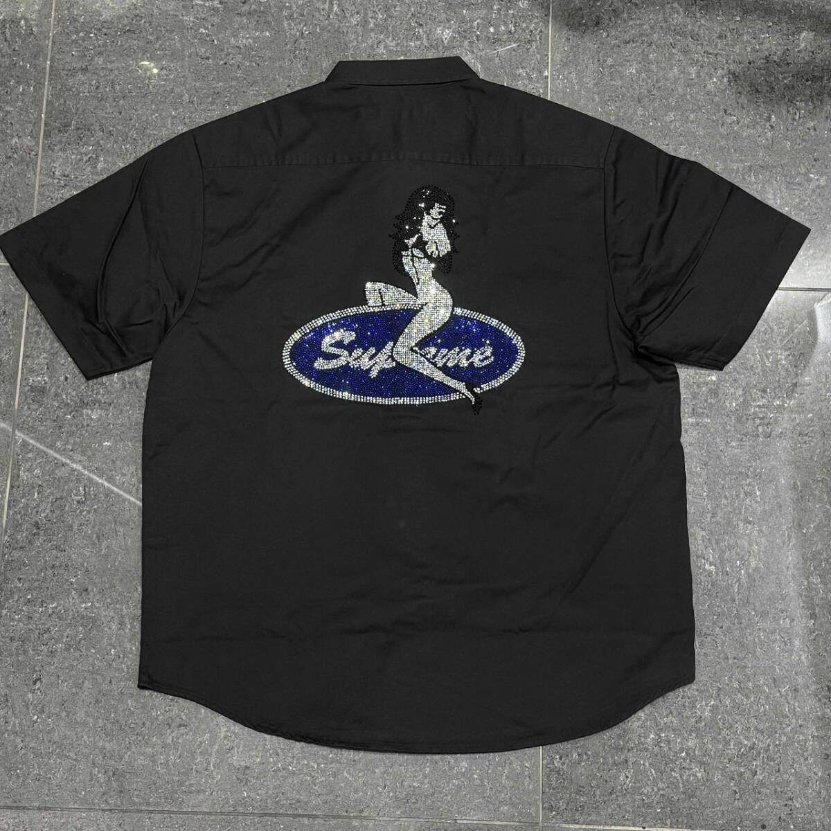 > Supreme 25ss Rhinestone Pin Up S/S Work Shirt Size-L シュプリーム ラインストーンピンアップワーク半袖シャツ