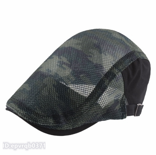 - ハンチング 夏新品 キャスケット 通気性抜群 メンズキャップ 紳士 帽子 迷彩柄 日よけ フリーサイズ 2色選ぶ/黒