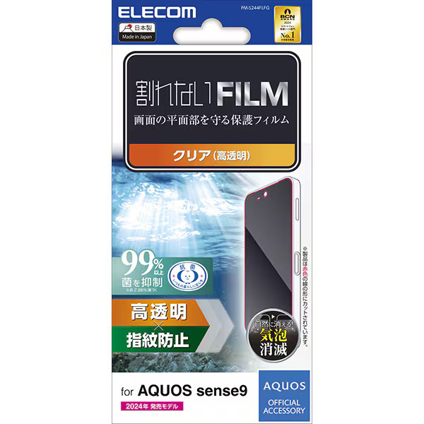 > AQUOS sense9用画面保護フィルム 指紋防止/高透明タイプ 端末の画面を傷や汚れから守る: PM-S244FLFG